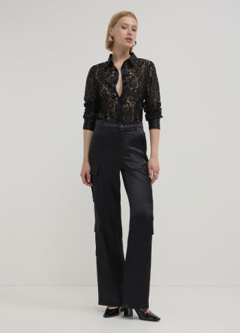 Cargohose mit Satin-Effekt Weiss