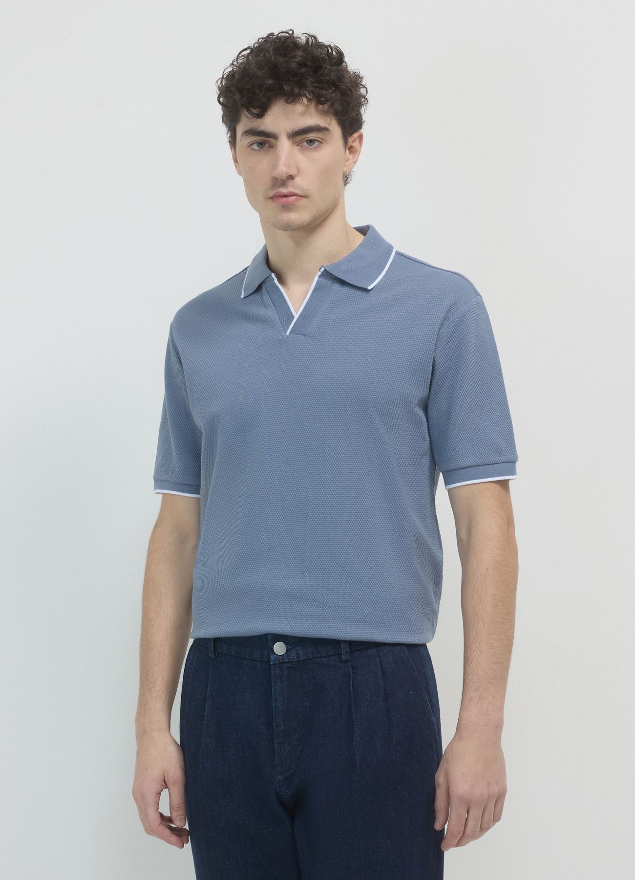 Gestricktes Poloshirt Fernblau